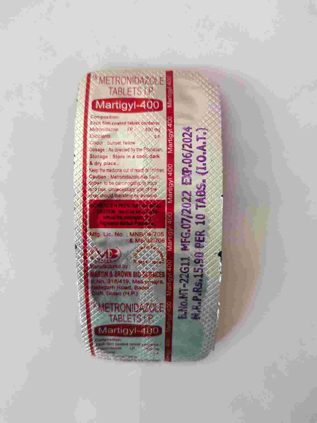 Composition: Each film coated bilayer tablet contains: Metronidazole IP 400mg.